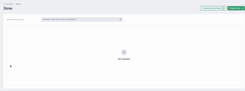 При повторном переходе по тому-же пути, а именно Сеть -> Cloud DNS мы уже попадаем в список зон (собственно доменов которыми мы будем делегировать управление).