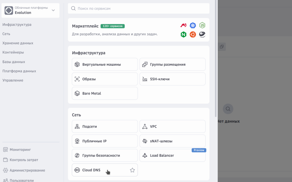 У барыг с рег.ру я прикупил домен pikur.art (прицепили мне какой-то премиум DNS за 500 рублей в год который мне никуда не упирался и я на них окончательно обиделся) вот с этим доменом мы и будем заниматься. Первым делом переходим в раздел Cloud DNS и подключение сервиса в консоль занимает несколько минут.