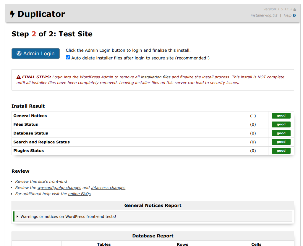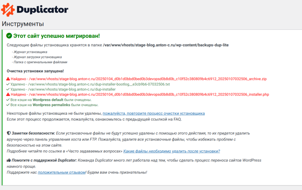 Наш сайт успешно мигрирован и обязательно не забываем удалить файлы архива и установщика.