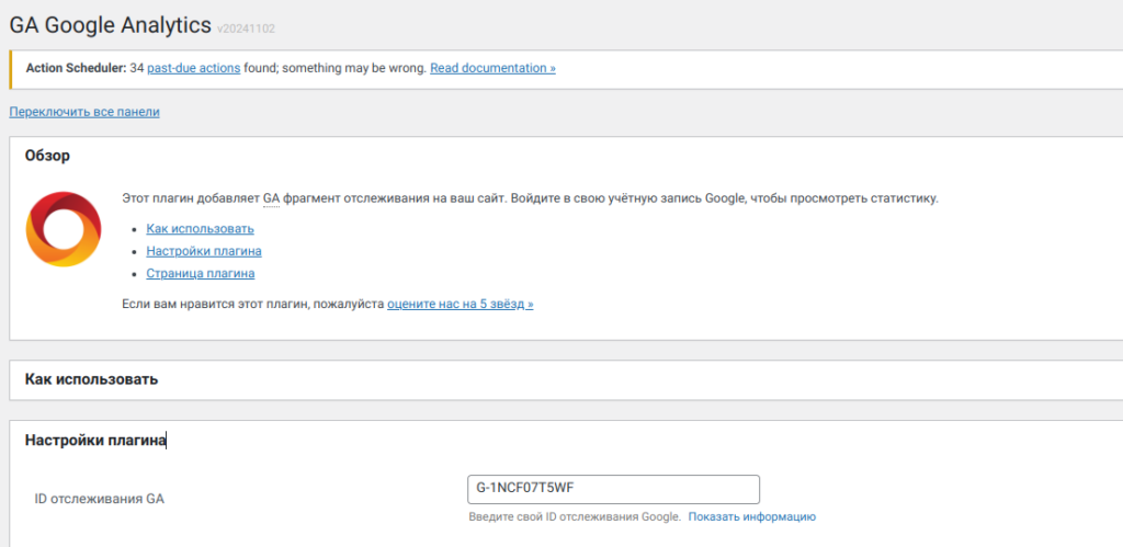 Этот плагин просто добавляет счетчик Google Analytics на сайт (не кребуется правок в коде сайта).