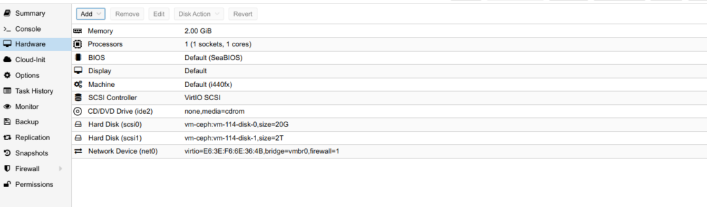 Для начала создаем виртуалку с восьмой CentOS на нашем кластере и дополнительный диск на CEPH-хранилище.