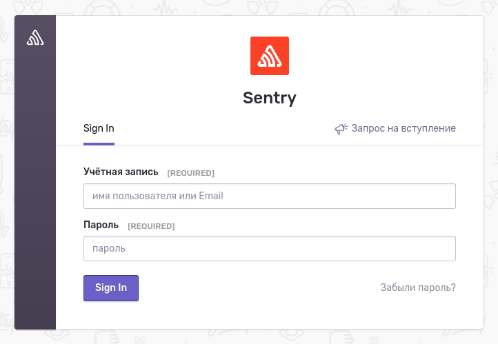 После запуска Sentry будет доступен на порту 9000 с доступом через web-браузер, например в моем случае http://10.54.110.77:9000/