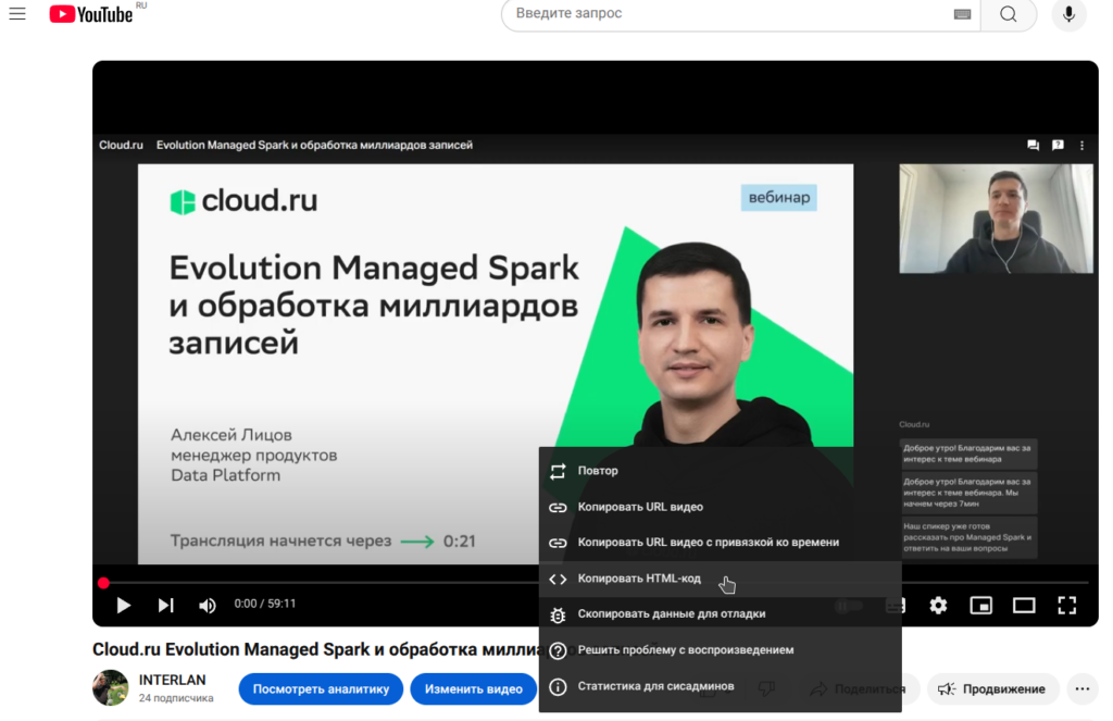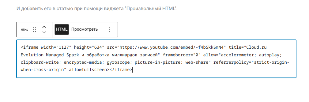 Встраивание HTML из новомодного редактора еще слава богу не убрали и нам просто надо получить HTML код для встраивания видео в качестве iframe (что для ютуба, что для рутуба аналогично).