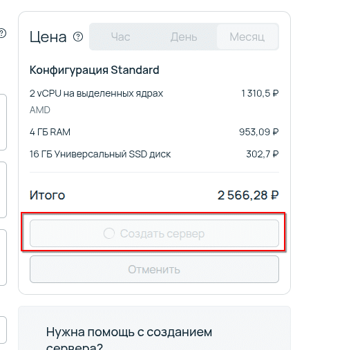 Сервер создаем на базе Ubuntu 24.04 в конфигурации Standart.